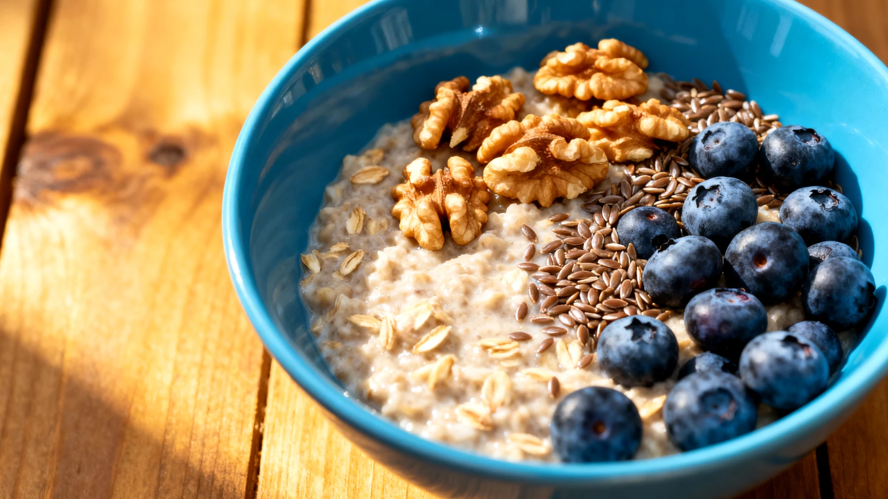 Die klassische warme Variante ist in wenigen Minuten zubereitet: Haferflocken mit der doppelten Menge Wasser oder Pflanzenmilch aufkochen, kurz köcheln lassen, bis eine cremige Konsistenz entsteht. Geschrotete Leinsamen und gehackte Walnüsse unterrühren, mit Blaubeeren toppen. Die warme Zubereitung macht das Porridge besonders bekömmlich und leicht verdaulich – ideal vor einer körperlich oder mental anstrengenden Schicht. Für besonders frühe Schichtbeginne bieten sich Overnight-Oats an: Haferflocken, Leinsamen und Walnüsse am Vorabend mit Flüssigkeit mischen und über Nacht im Kühlschrank quellen lassen. Morgens nur noch die Blaubeeren dazugeben – fertig ist das nährstoffreiche Frühstück ohne morgendlichen Zeitdruck.