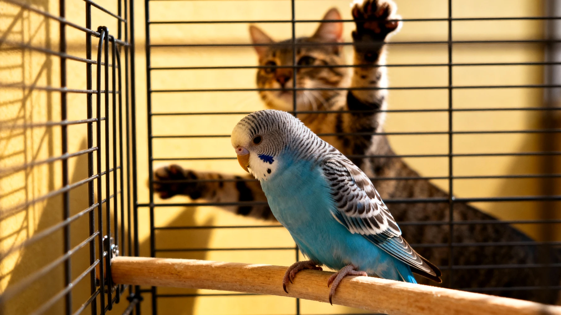 Wenn Wellensittiche mit Hunden, Katzen oder anderen Tierarten zusammenleben, entsteht eine problematische Konkurrenzsituation um Aufmerksamkeit und Raum. Ein Hund fordert aktiv Spielzeit ein, eine Katze kommuniziert ihre Bedürfnisse deutlich – der Wellensittich hingegen wird übersehen. Hinzu kommt: Die Anwesenheit natürlicher Prädatoren wie Katzen kann Wellensittiche in permanenten Alarmzustand versetzen, selbst wenn keine direkte Gefahr besteht.